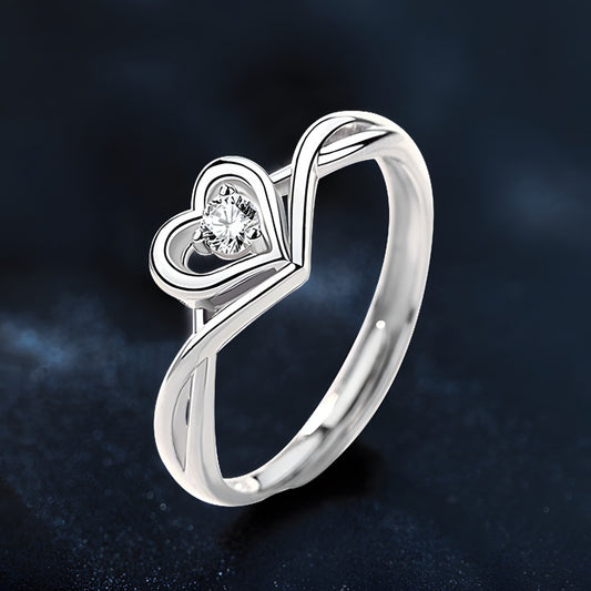 Adjustable Heart Promise Ring - 925 Sterling Silver | First Love Gift with Secure Prong Setting