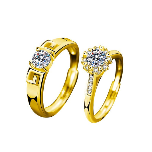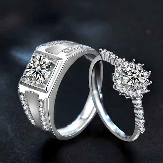 Diamond-Alternative Couple Rings - 925 Sterling Silver Moissanite Adjustable