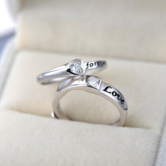 Adjustable Heart Couple Rings - 925 Sterling Silver (White Gold Plated, Romantic Gift Jewelry)