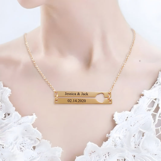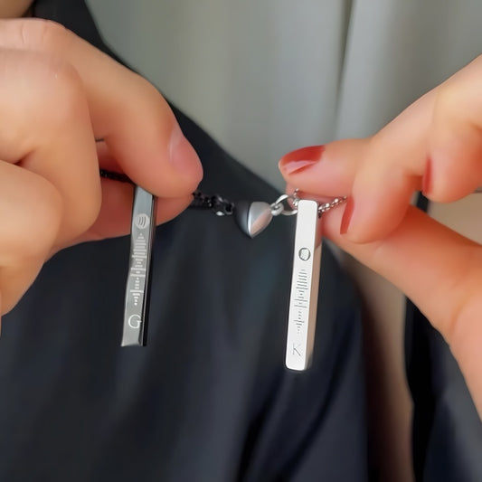 Magnetic Heart Couple Necklace Set - Engravable 3D Bar Code Pendant Love Jewelry