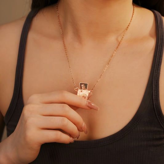 Vintage Polaroid Camera Charm Necklace - Custom Photo Locket Personalized Jewelry Gift