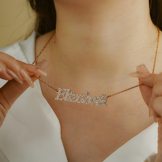 Custom Name Necklace with Zirconia Letters - Stainless Steel Personalized Jewelry Gift