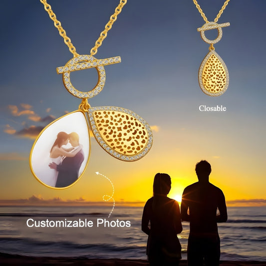 Hollow Teardrop Locket Necklace - Gold Plated Photo Pendant Women's Jewelry Gift