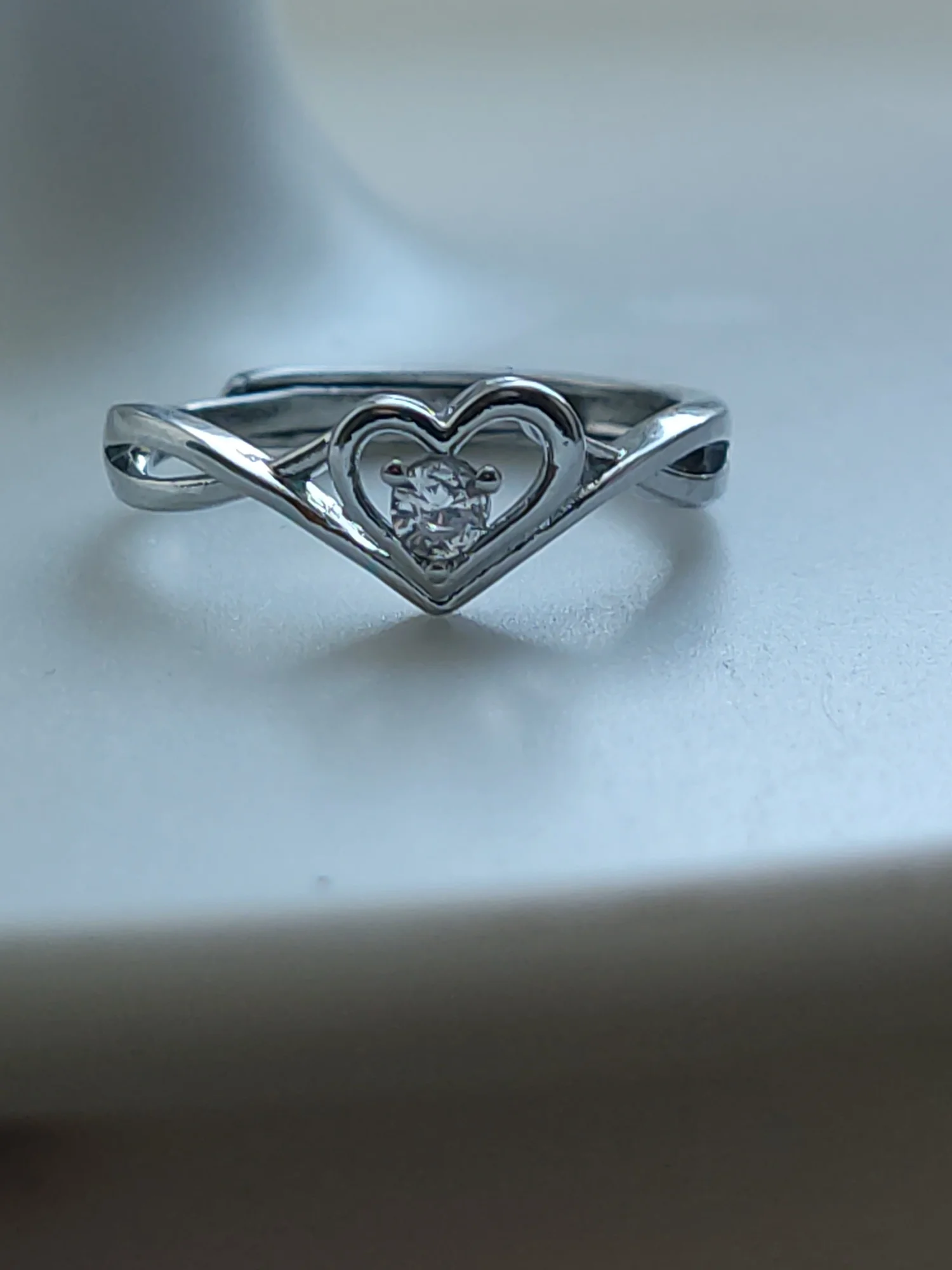 Adjustable Heart Promise Ring - 925 Sterling Silver | First Love Gift with Secure Prong Setting