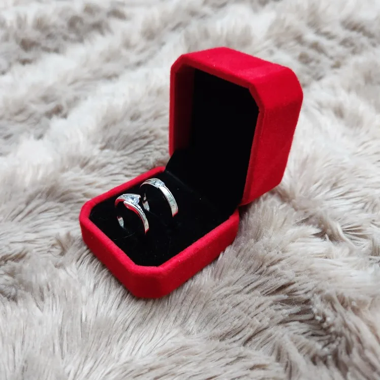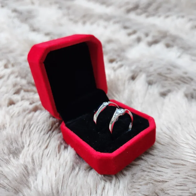 Diamond-Alternative Couple Rings - 925 Sterling Silver Moissanite Adjustable