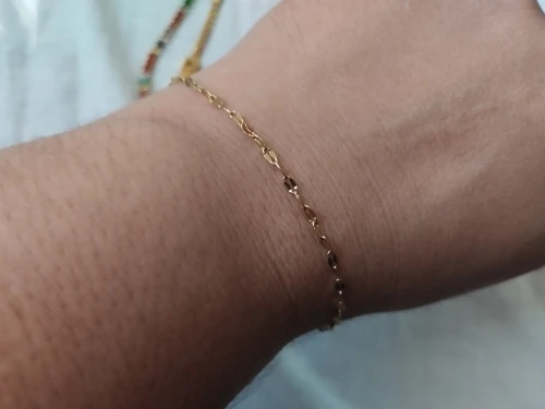 A golden shimmer that feels soft as petals—this petal chain bracelet adds a graceful finish to your look, whether you wear it solo or stacked. Its sleek links catch the light just enough to make everyday sparkle feel effortless.