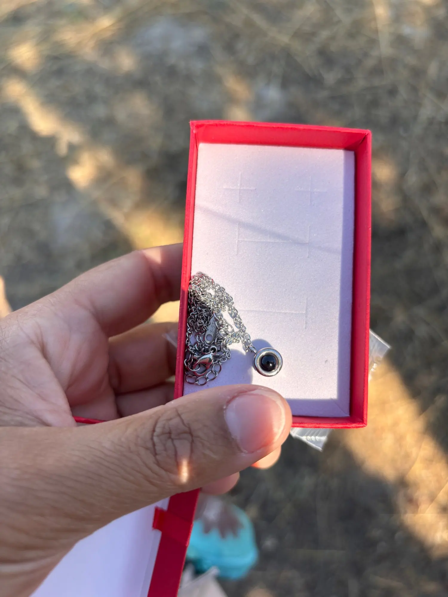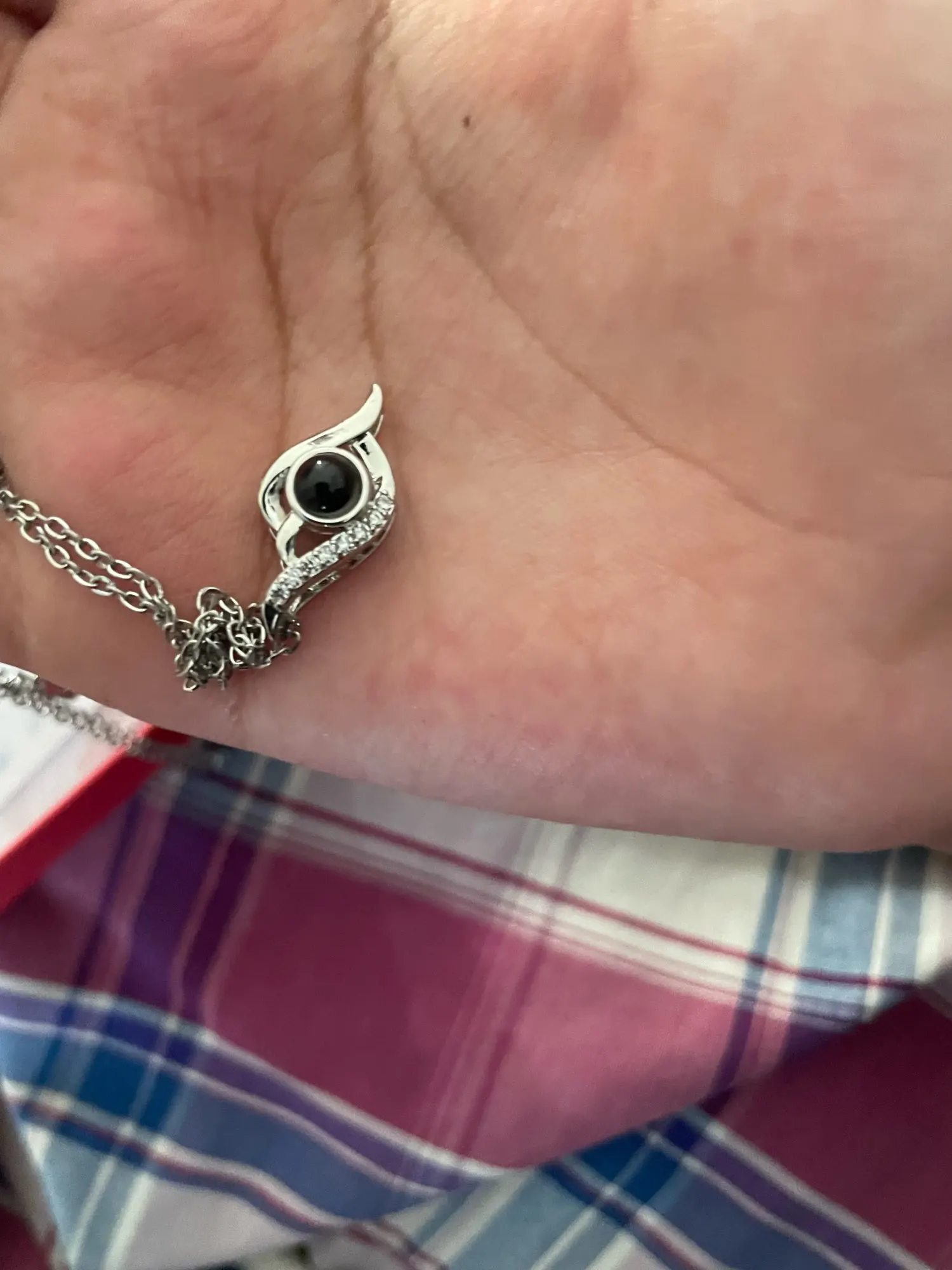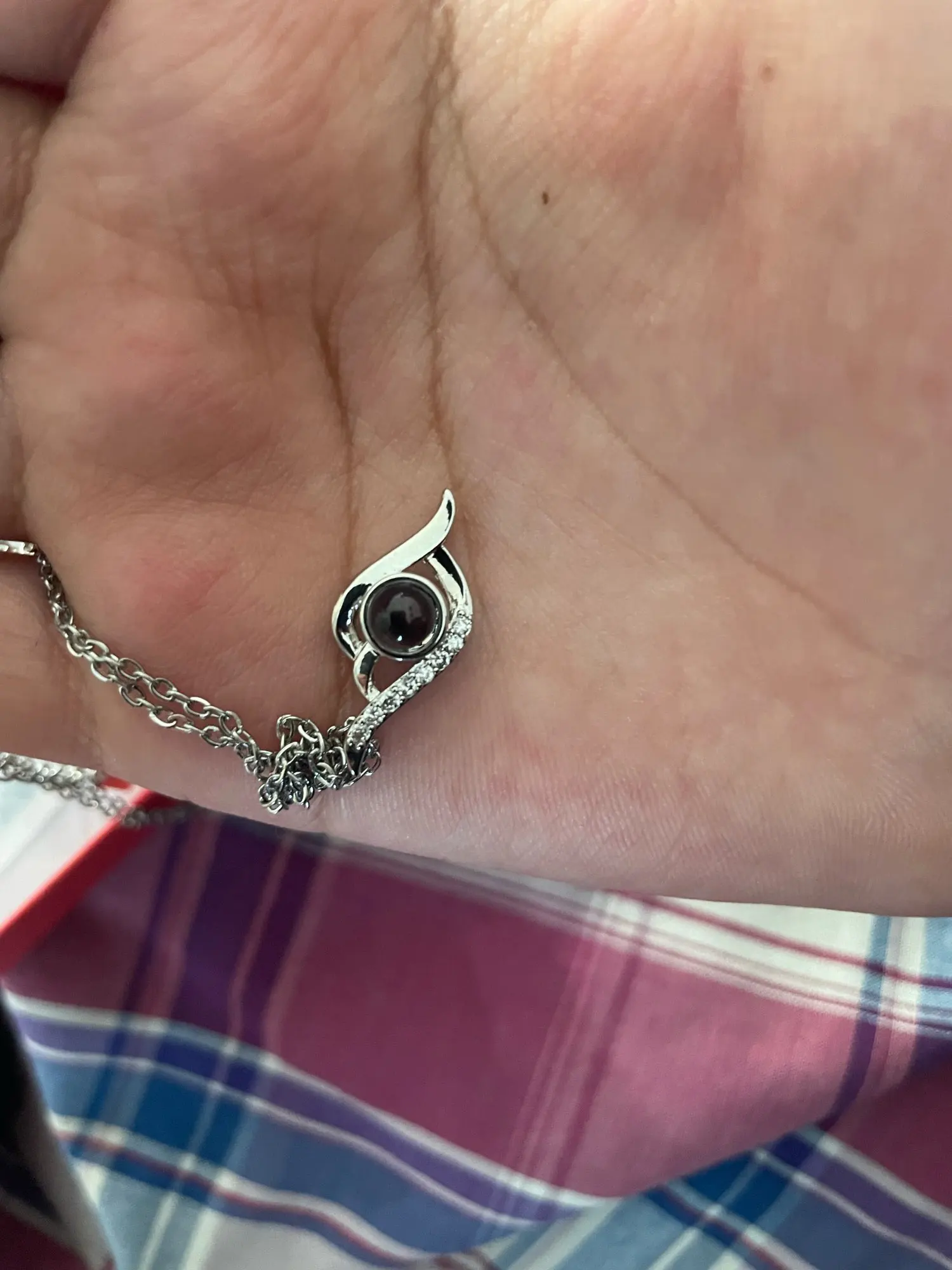 - Using your phone camera: Place the photo lens of your camera over the rounded portion of the pendant stone.