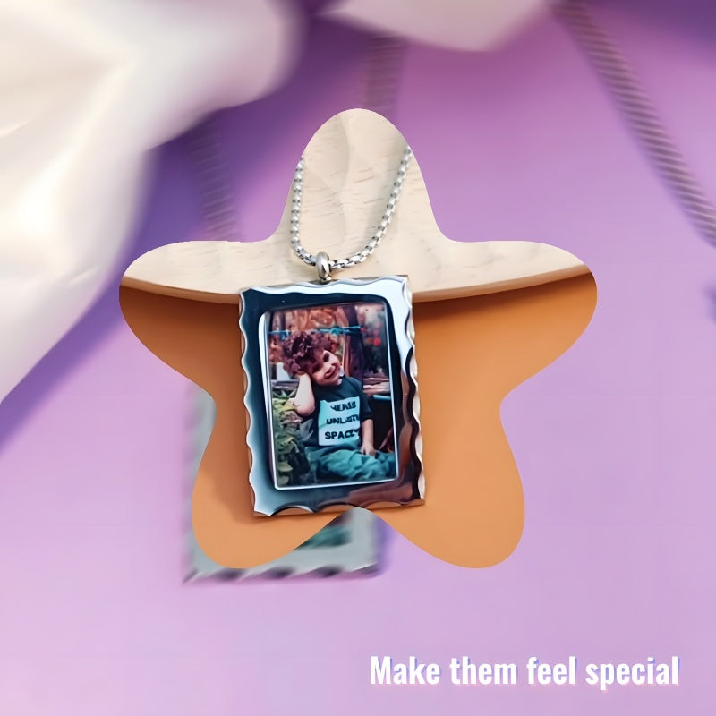 Valentine's Day Photo Necklace for Women - Customizable Rectangle Locket with Diamond Frame - Personalized Gift for Her
